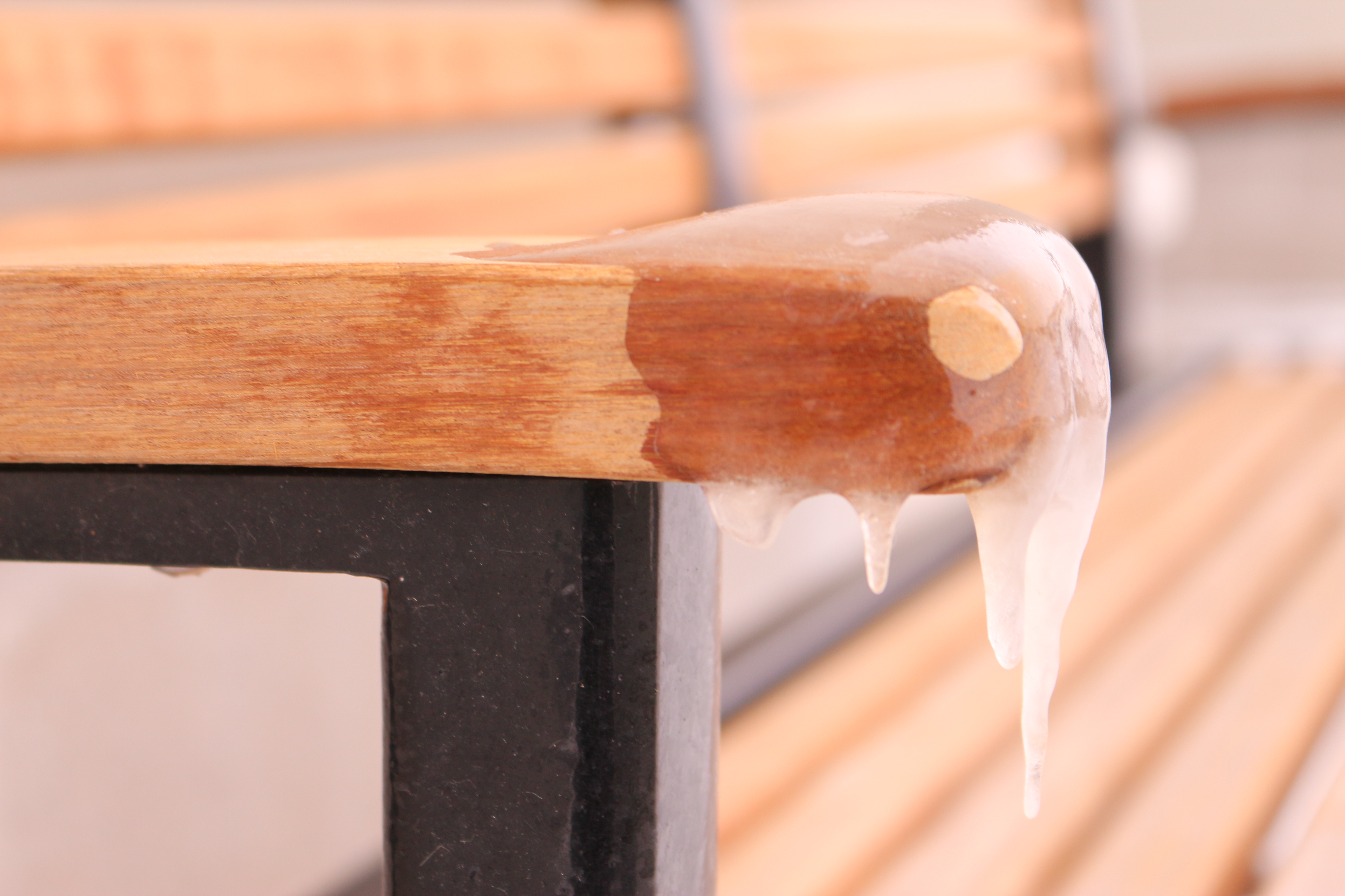 This week’s photography homework had the options of shooting two out of three items: a bench, a fire hydrant and a monument. I took a lot of photos of colourful hydrants against the snow and tried to find one of the painted mural ones to no avail. I shot a wonderful photo of the monument to honour Nellie McClung. I took several benches and liked them. I decided to go shopping. I saw the clean benches without any snow as I walked towards one of the stores and then I saw this: icicles dripping off a bench arm. I spotted it from afar and thought this was the photo that could make the difference. Sometimes we just need eyes to see.