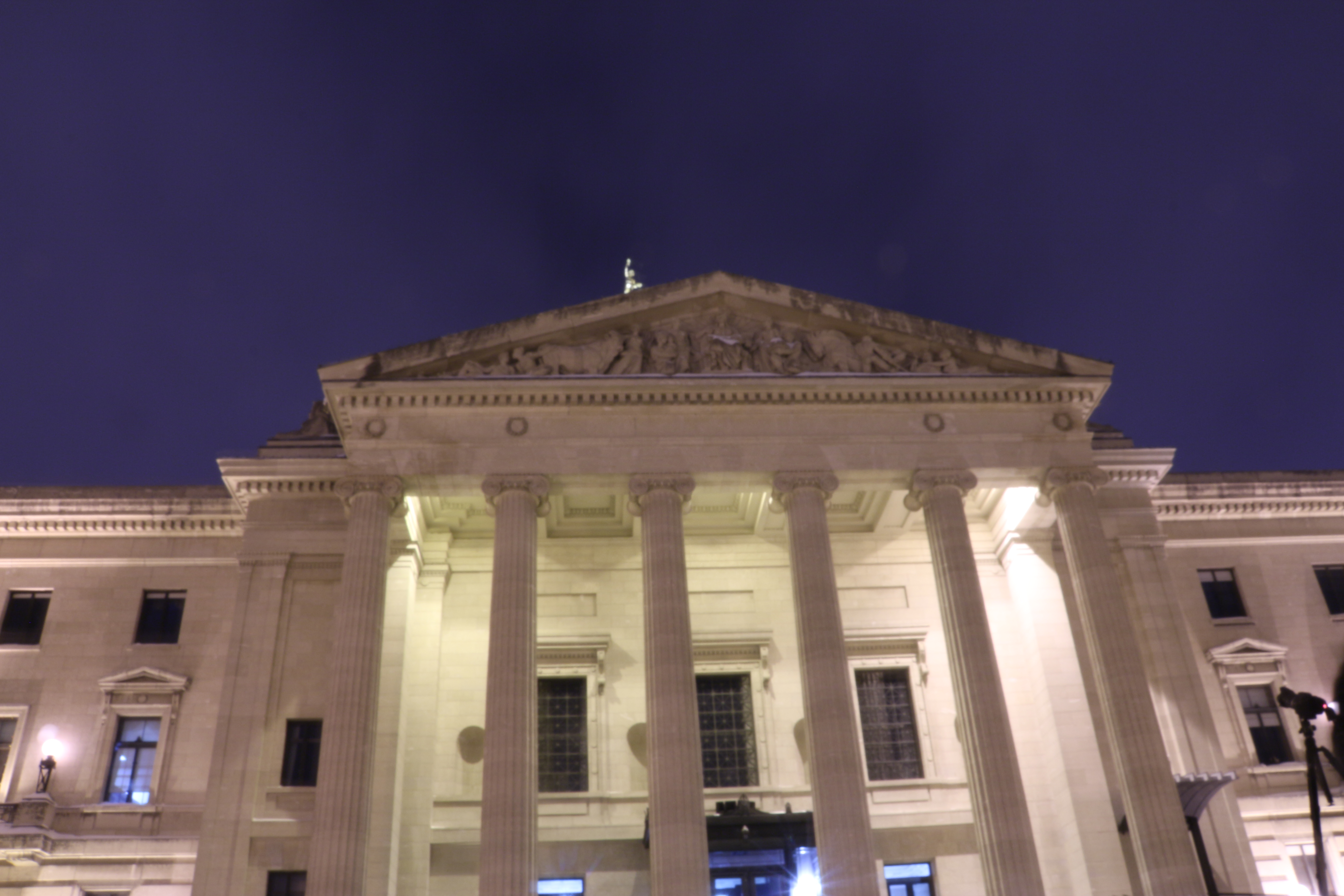 I am taking a photography course right now. The other night we had an outdoor element to the class. For the last 45 minutes of class, we went outside of the Parliament Building and tried some shots. I had been roasting inside because I had dressed so warm but it did not take long for me to get cold. I managed to stick it out for about half an hour and this is the best shot of the night. I learned how to customize my white balance so that the picture was not yellow but grey like this. That was worth braving the cold.